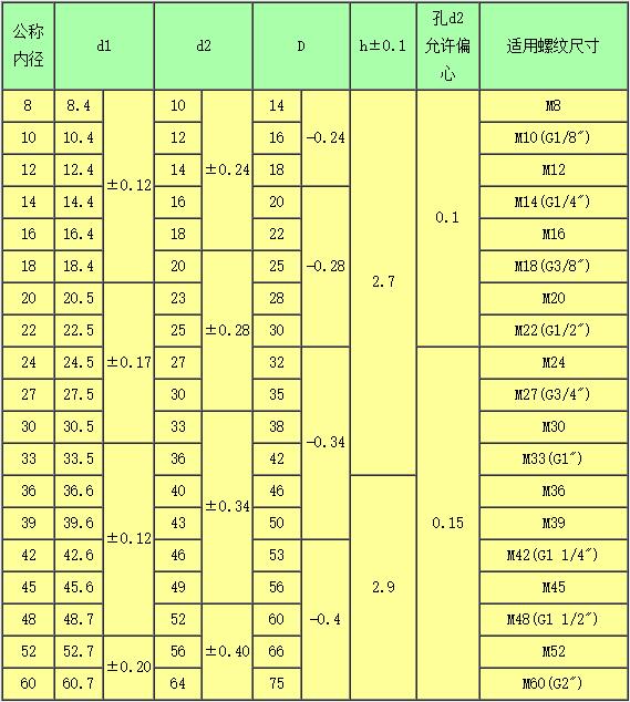 表二 單位:mm